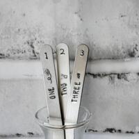 Set of two plant markers hand-stamped in aluminum. Will not rust or fade in the sun.